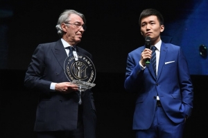 张康阳晒出与莫拉蒂的合照并写道:那位让我们成为内拉祖里的主席 💙🖤 生日快乐,莫拉蒂先生🎂🎉